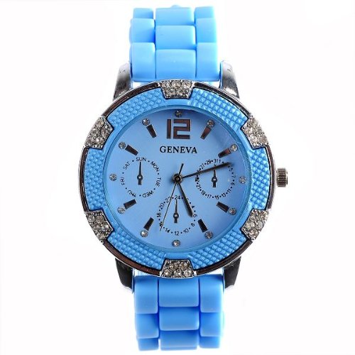 Montre Bleue Cyan Fashion pour Femmes Triple Cadran Analogique Faux Diamants Reviews